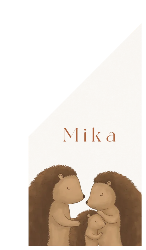 Maak de geboorte van je kindje bekend met deze leuke geboortevlag! Een lieve illustratie van een egel gezinnetje. Pas de vlag eenvoudig aan in de editor. Tip: deze vlag is ook heel leuk om op te blijven hangen als je kind jarig is!