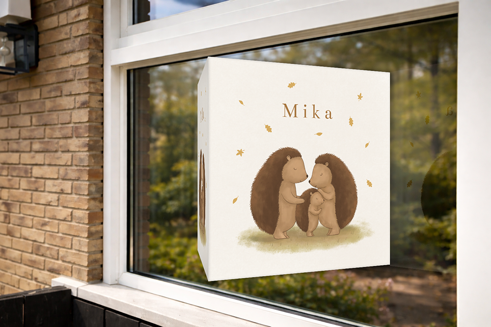 Maak de geboorte van je kindje bekend met dit gezellige dubbele raambord! Een lieve illustratie van een baby egeltje die wordt geknuffeld door papa en mama egel. Pas het geboorte-raambord eenvoudig aan in de editor.