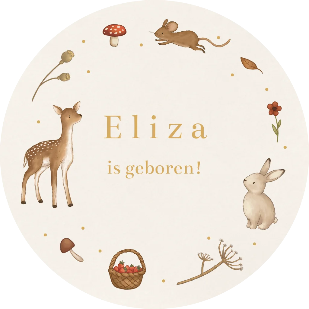 Kondig de geboorte van je kindje aan met deze leuke raamsticker! Op de sticker staan allemaal lieve bosdiertjes. Pas eenvoudig aan in de editor!
