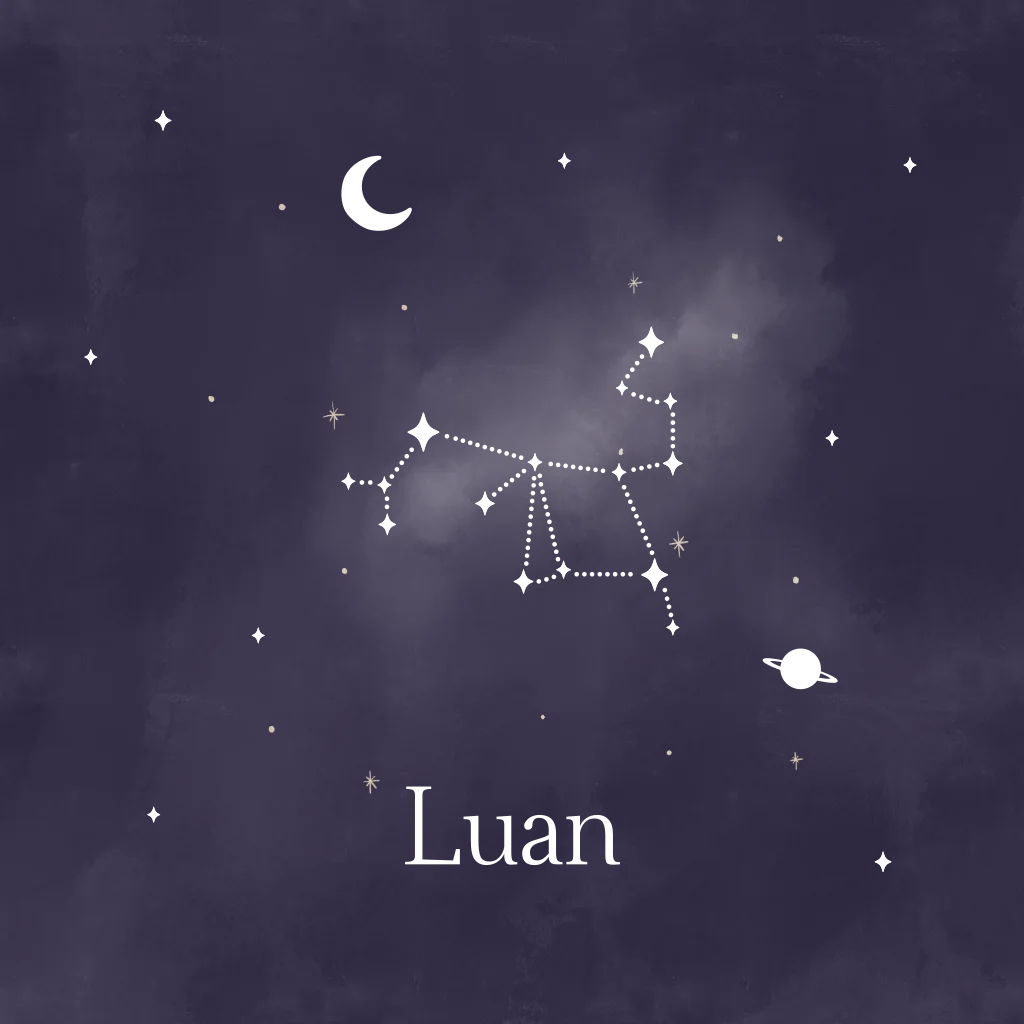 Een magische geboortekaartje met een donkerblauwe sterrenhemel. De naam, sterren en sterrenbeeld zijn afgewerkt in holografisch folie. Pas het kaartje aan in onze online editor.