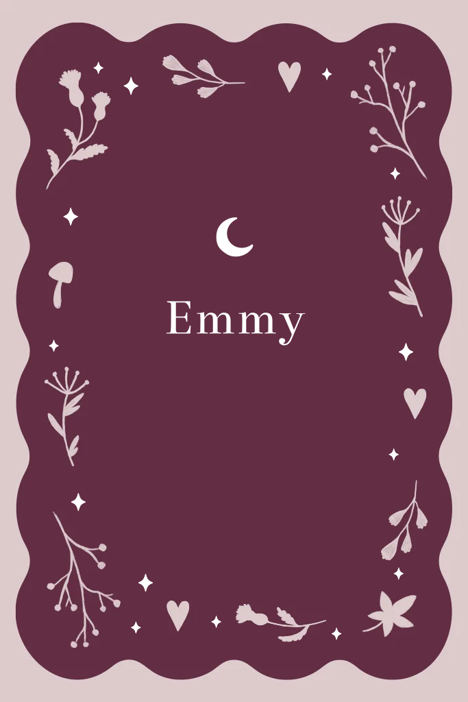 Een lief, uniek geboortekaartje. De diepe paarse kleur in combinatie met de bloemetjes geeft het kaartje een folklore uitstraling. Het maantje, sterretjes en de naam zijn afgewerkt in goudfolie.