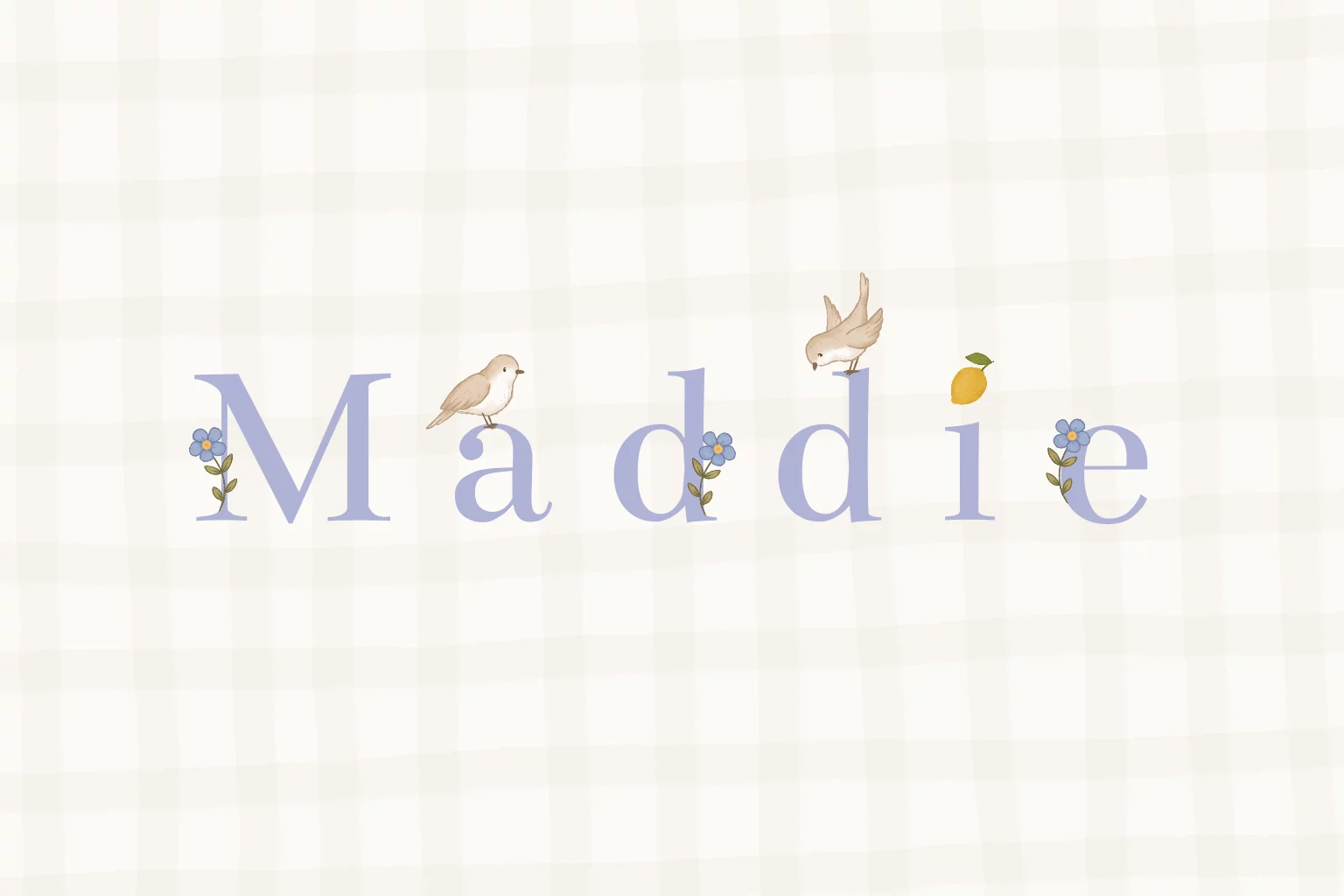 Een lief, uniek geboortekaartje met een ruitjes achtergrond. Op de naam staan vogeltjes en bloementjes. De zachte kleuren geven het kaartje een echt lente gevoel! Pas het kaartje eenvoudig aan in onze editor.