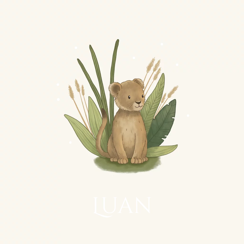 Lief geboortekaartje met een baby leeuwtje. De goudfolie stipjes zijn net vuurvliegjes en geven het kaartje een magische uitstraling.