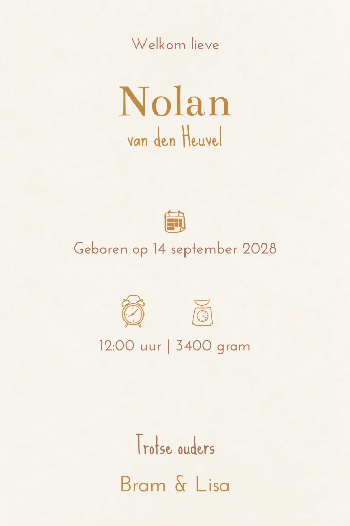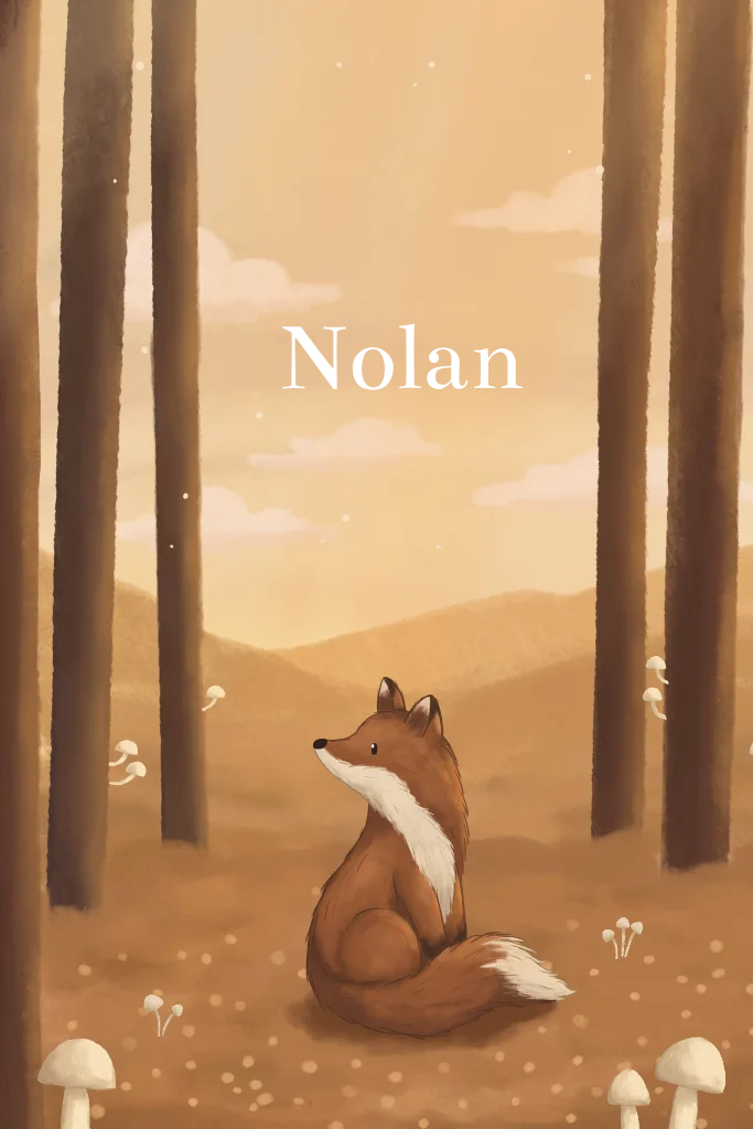 Geboortekaartje met een lieve illustratie van een vosje in een bos met prachtige warme herfstkleuren. Het avondzonnetje, in combinatie met de paddenstoeltjes, geeft het kaartje een dromerig uitstraling. De naam is afgewerkt in glinsterend goudfolie. Pas het kaartje eenvoudig aan in de online editor.