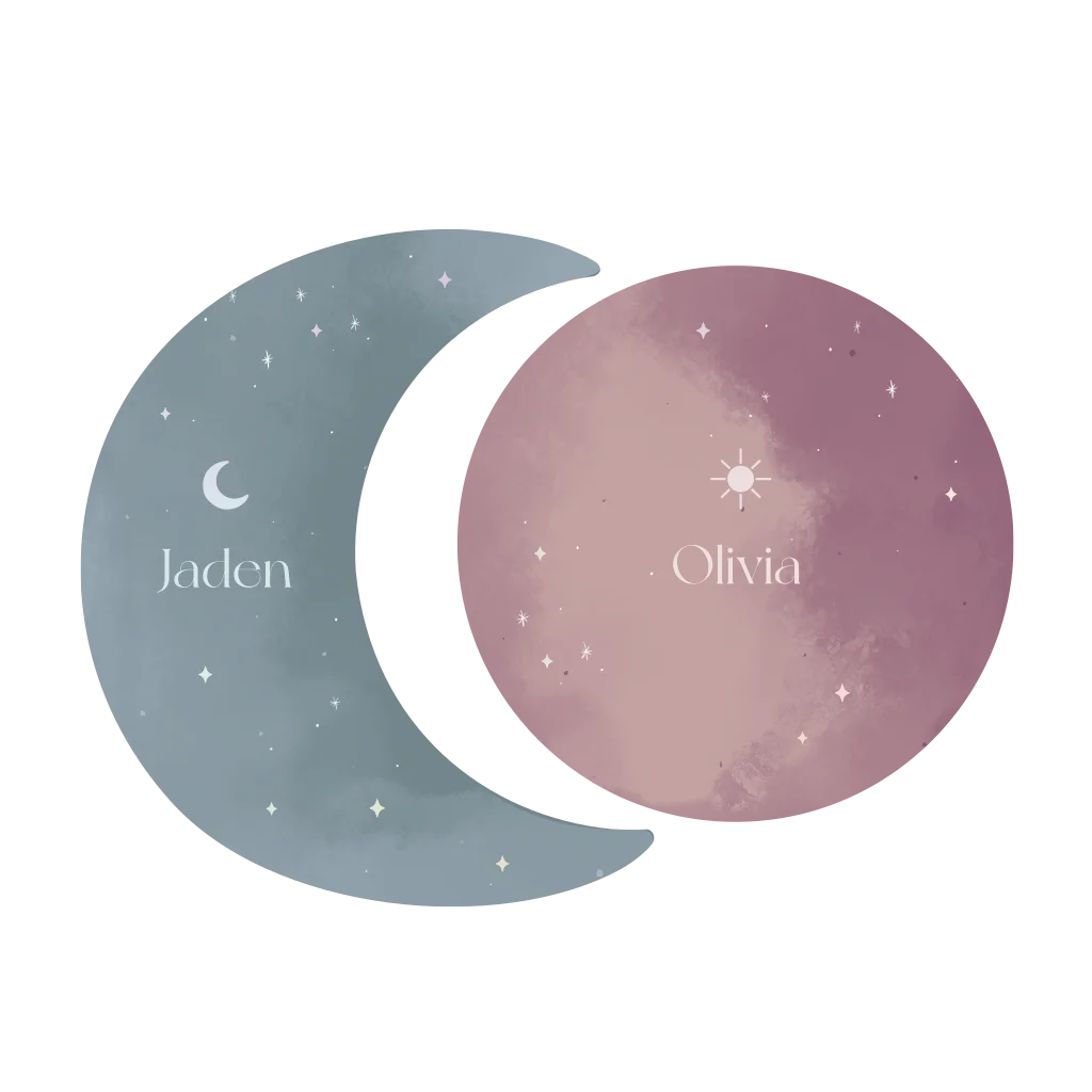 Tweeling geboortekaartjes maan en zon