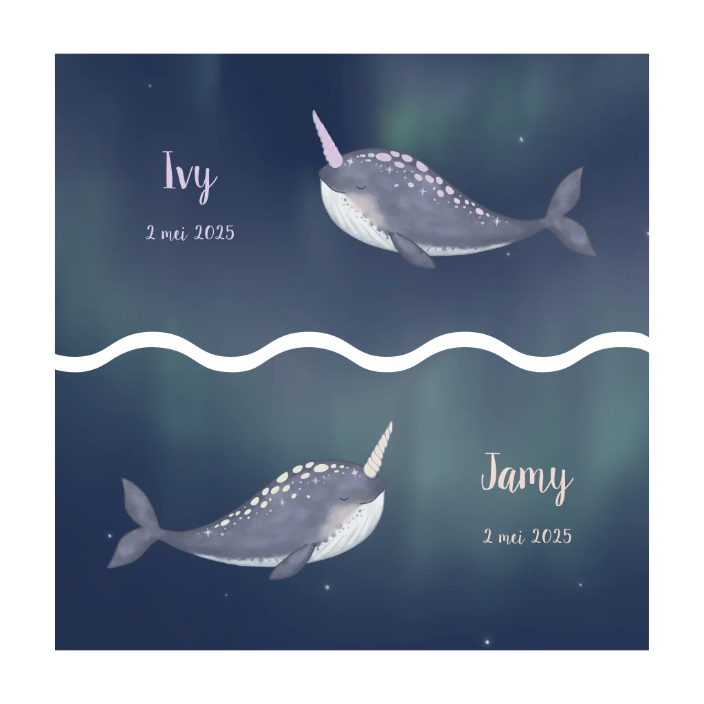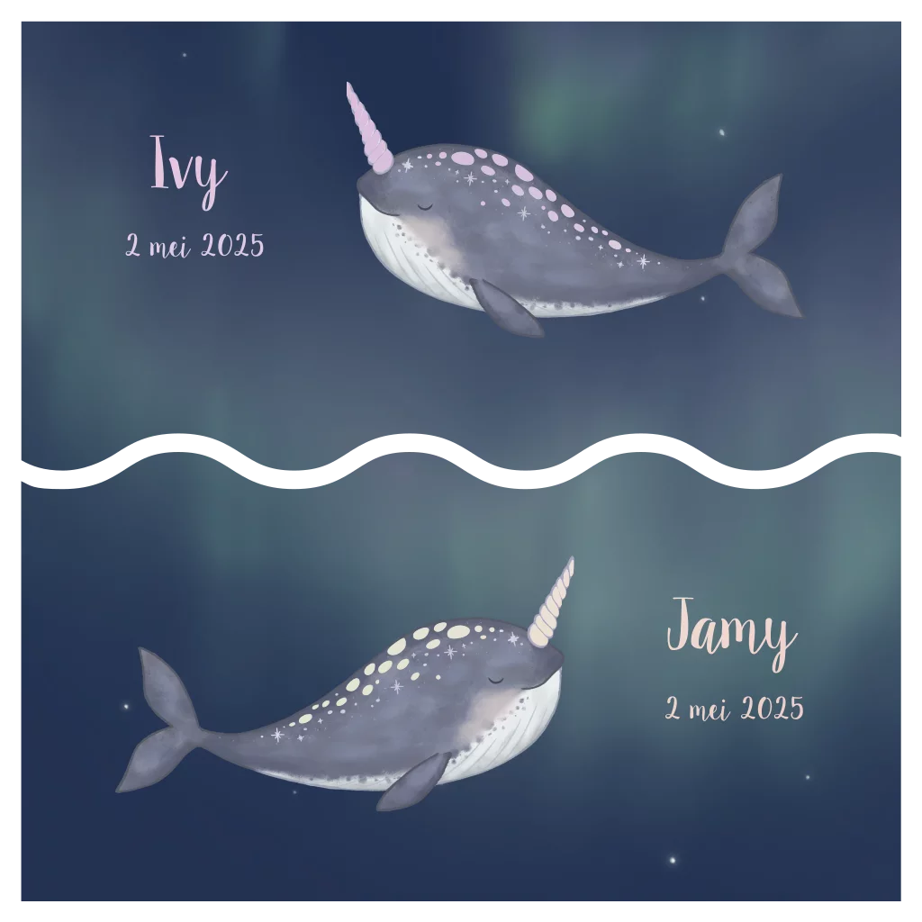 Tweeling geboortekaartjes narwal