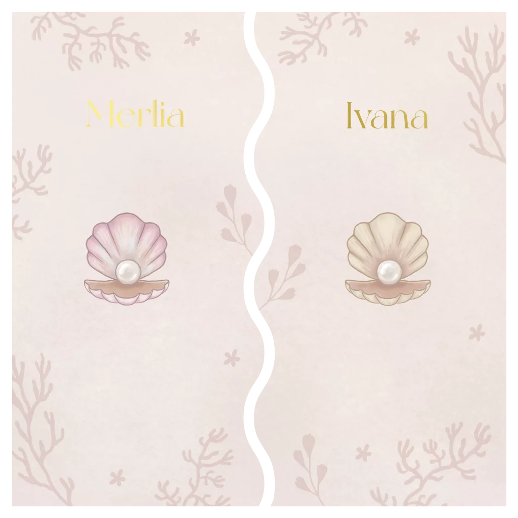 Twee geboortekaartjes die in elkaar passen voor een tweeling. Zo heeft ieder kindje een eigen kaartje. Op de kaartjes staan illustraties van oesterschelp met een parel. Op de achterkant hebben we een mooie zin geschreven; 'Twee parels, uniek en toch verbonden, onze tweeling is geboren!' De namen zijn afgewerkt in goudfolie wat zorgt voor een luxe uitstraling.