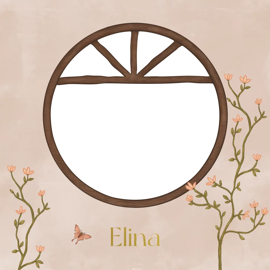 Een origineel geboortekaartje met een doorkijkje, achter het raam is een schattige egel familie te zien. Een lief en sprookjesachtig kaartje om de geboorte van jullie kleintje aan te kondigen! De naam is afgewerkt met goudfolie. Pas het kaartje gemakkelijk aan in de editor.