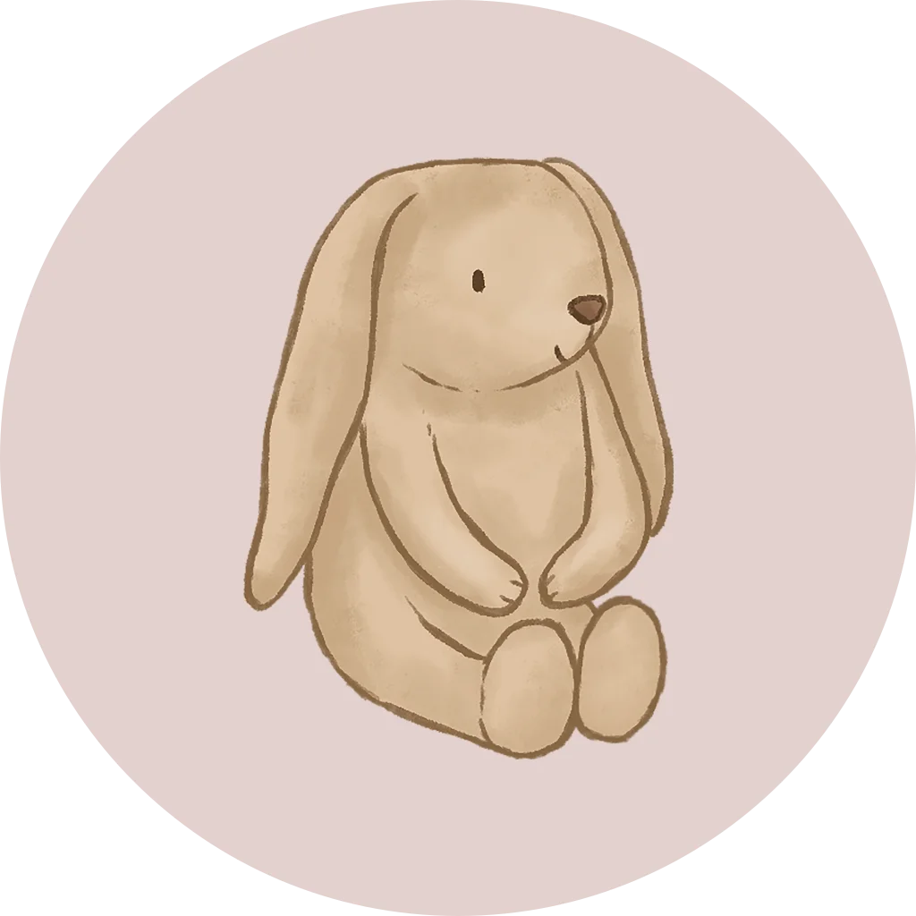 Lief sluitstickertje met een konijn knuffeltje. Perfect om de enveloppen van je geboortekaartjes mee dicht te plakken. Pas de sluitzegel gemakkelijk aan in de editor.