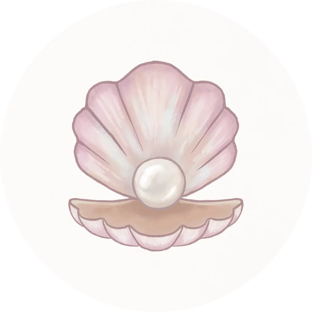 Uniek sluitstickertje met een paarse oesterschelp met parel. Perfect om de enveloppen van je geboortekaartjes mee dicht te plakken. Pas de sluitzegel gemakkelijk aan in de editor.