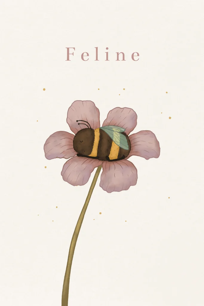 Unieke poster met een lieve illustratie van een slapend bijtje in een roze bloem. Pas de poster eenvoudig aan in onze online editor!