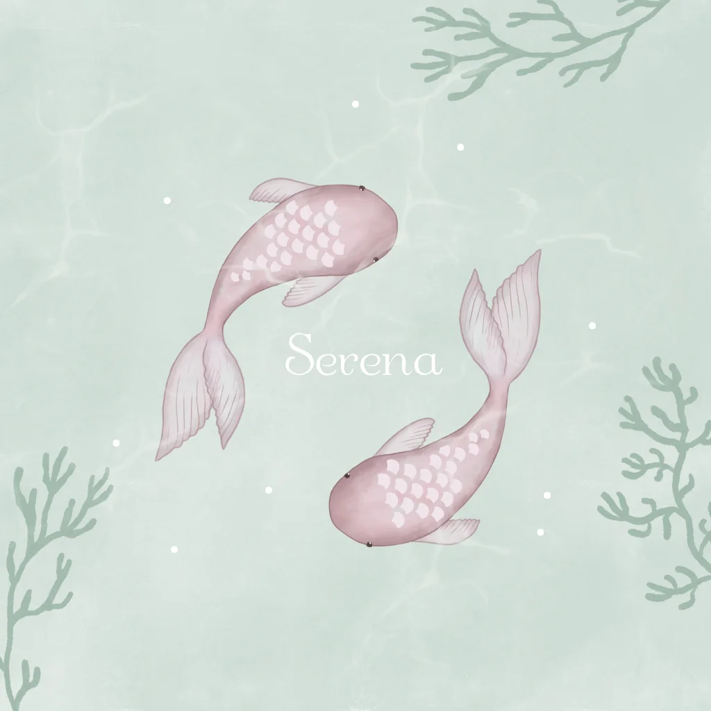 Een originele poster met een illustratie van twee visjes die in helder blauw water zwemmen. Pas de poster gemakkelijk aan in de editor.
