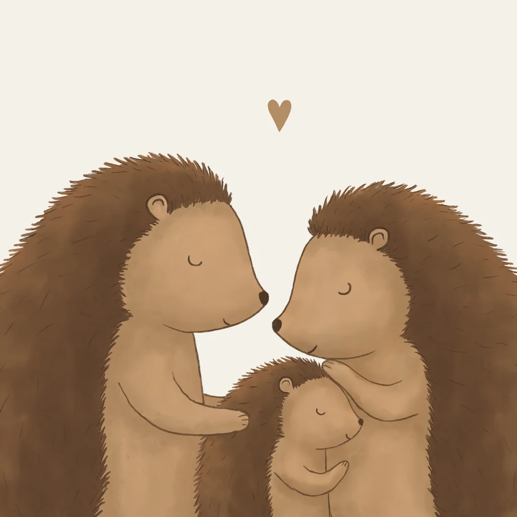 Een lieve wenskaart met een illustratie van een egel gezinnetje. Leuk om te versturen als geboorte felicitatie kaartje. Personaliseer het kaartje eenvoudig in onze editor.